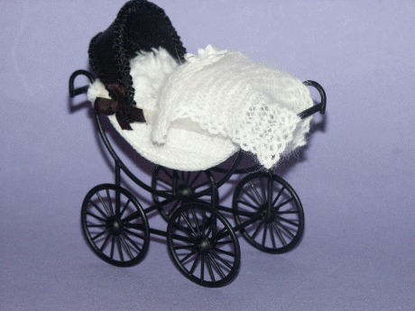 für das Puppenbaby mit handgestricktem Angoradeckchen